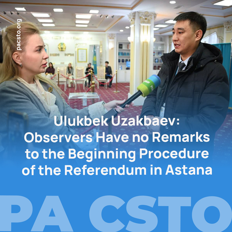 Ulukbek Uzakbaev, deputy Chairman of the Committee on Law and Order, Combating Crime and Counteraction to Corruption of the Jogorku Kenesh of the Kyrgyz Republic, the coordinator of the CSTO PA observer group, noted that the parliamentarians have no remarks to the beginning procedure of the referendum in Astana.