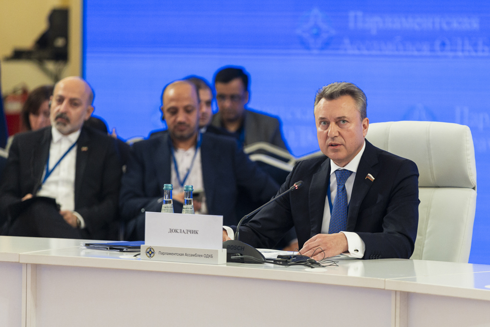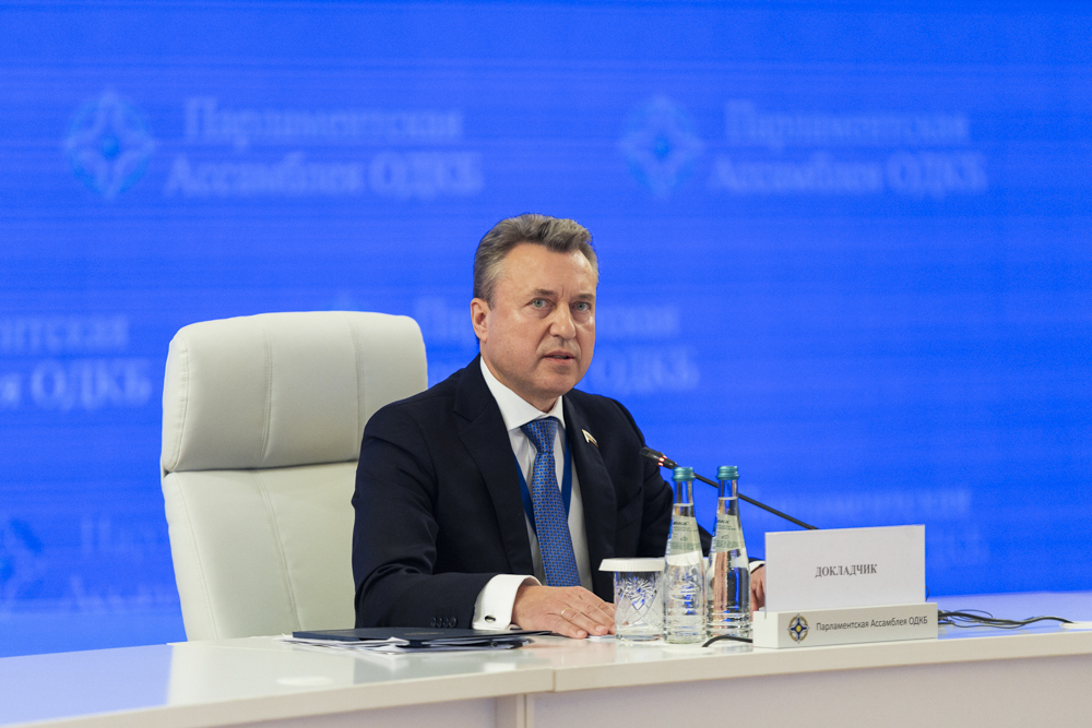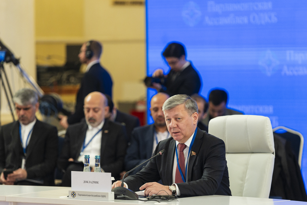 Delegation of the Parliament of the Republic of Kazakhstan to the CSTO PA consists of 8 deputies from the Mazhilis of the Parliament of the Republic of Kazakhstan and 8 members of the Senate of the Parliament of Kazakhstan. Plenipotentiary Representative of the Parliament of the Republic of Kazakhstan, deputy Executive Secretary of the CSTO Parliamentary Assembly: Viktor Rogalev