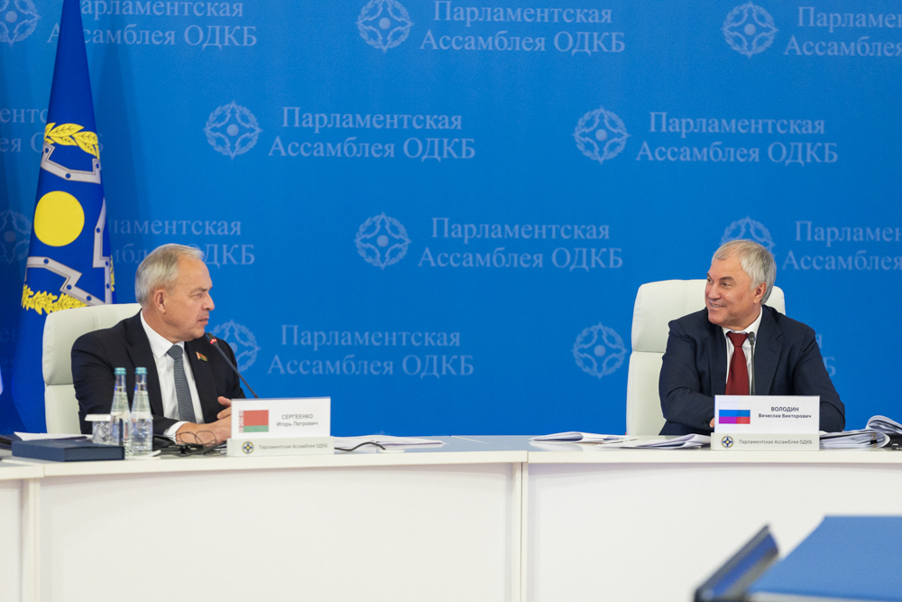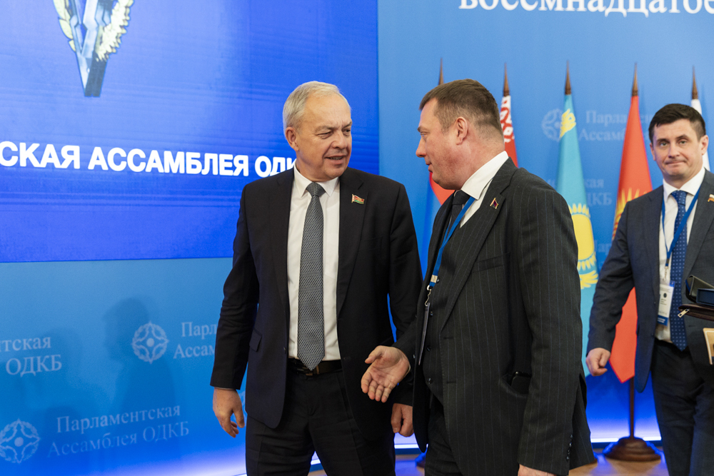 Delegation of the National Assembly of the Republic of Belarus to the CSTO PA consists of 7 deputies from the House of Representatives of the National Assembly of the Republic of Belarus and 4 deputies from the Council of the Republic of the National Assembly of the Republic of Belarus. Plenipotentiary representative of the National Assembly of the Republic of Belarus: Viktor Kogut